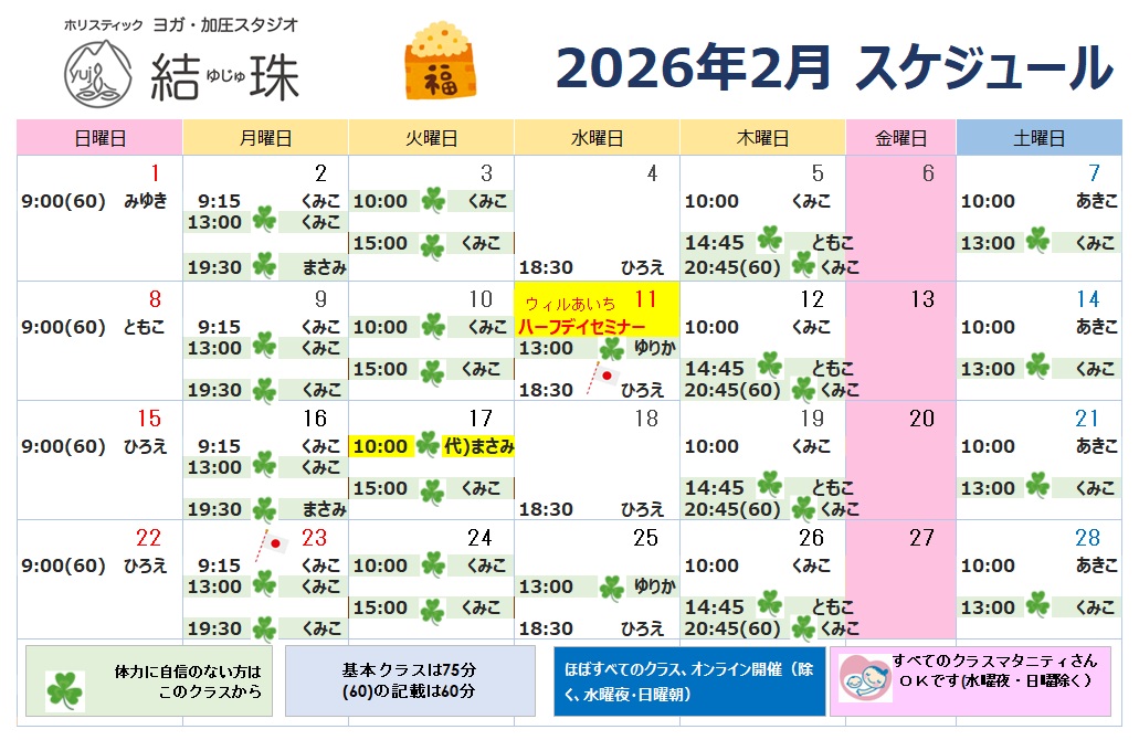 【訂正】2月4日(水)18:30ひろえ先生のクラス、記載漏れしていましたが、クラス通常通りです。申し訳ございません。