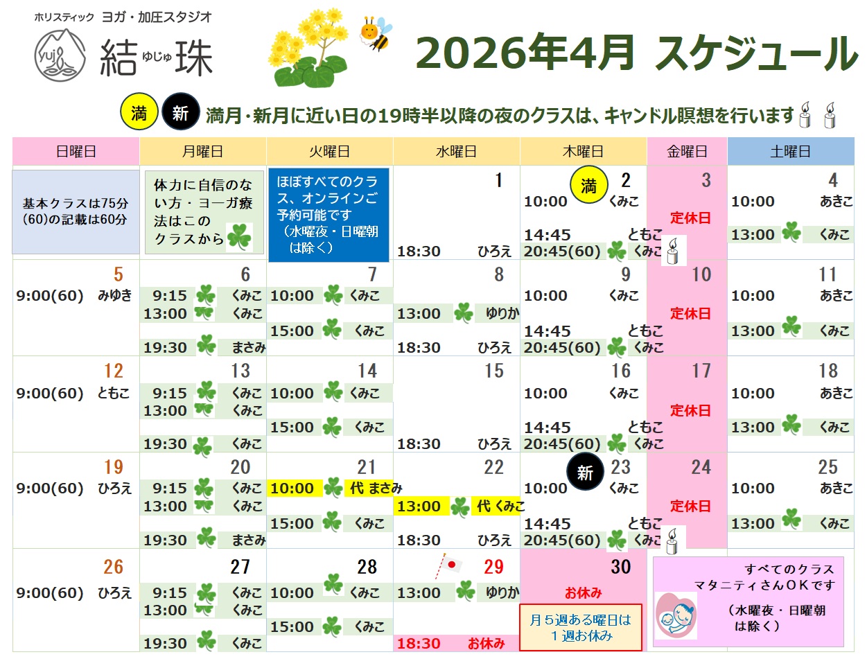 2026年3月スケジュール(キャンドル瞑想追記あり)